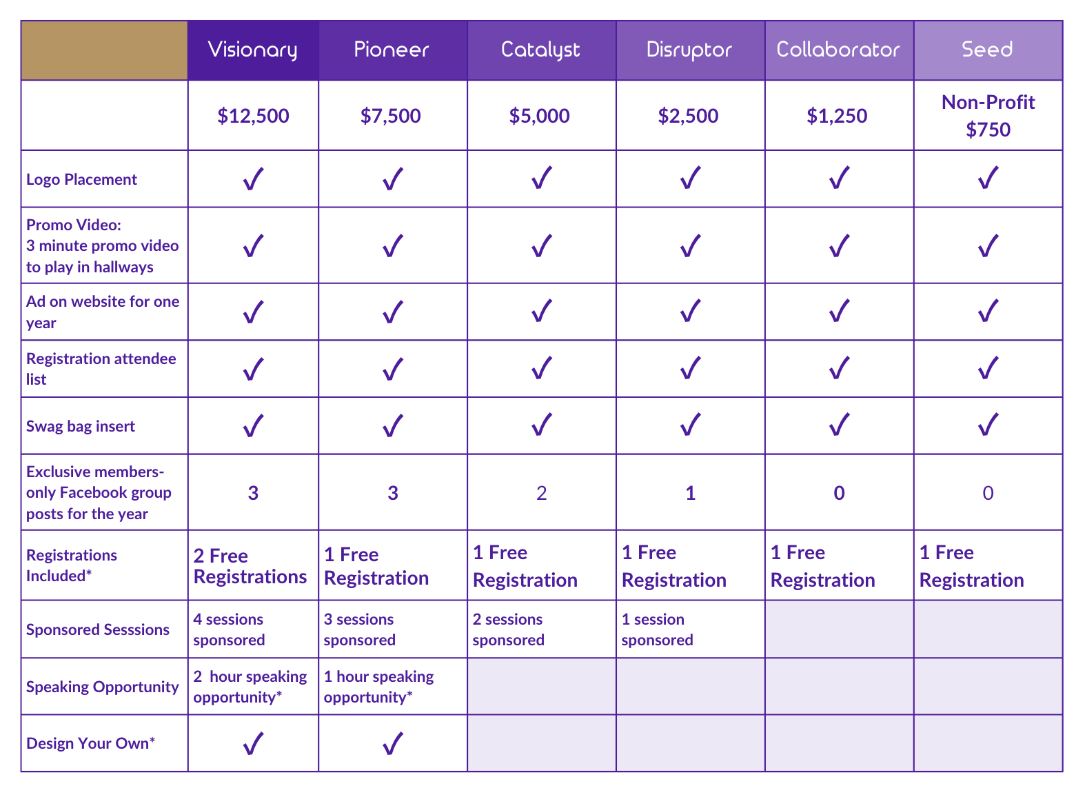 Choose a package that fits your goalsSponsorship Levels